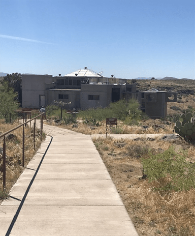 As I bended the corner to Arcosanti, I started to see concrete buildings (very sustainable) growing out of the earth.